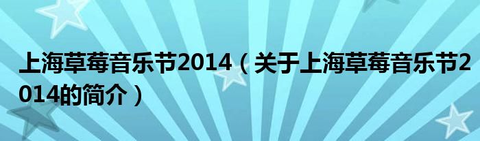 本文關(guān)于上海草莓音樂節(jié)2014的簡介就講解完畢,希望對大家有所幫助。