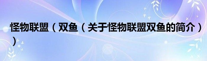 大家好,怪物聯(lián)盟 雙魚(yú),關(guān)于怪物聯(lián)盟 雙魚(yú)的簡(jiǎn)介很多人還不知道,現(xiàn)在讓我們一起來(lái)看看吧!