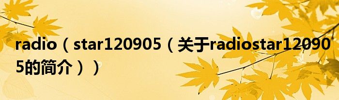 本文關于radio star 120905的簡介就講解完畢,希望對大家有所幫助。