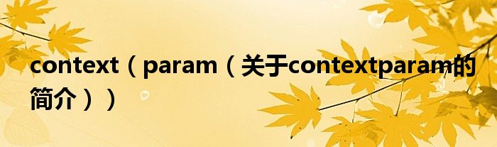 本文關于context param的簡介就講解完畢,希望對大家有所幫助。