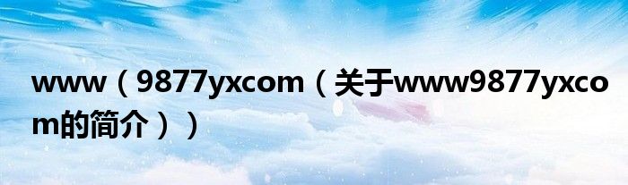 大家好,www 9877yx com,關于www 9877yx com的簡介很多人還不知道,現在讓我們一起來看看吧!
