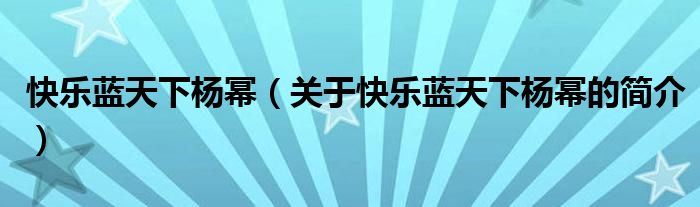 本文關于快樂藍天下楊冪的簡介就講解完畢,希望對大家有所幫助。
