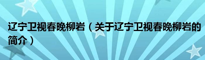大家好,遼寧衛視春晚柳巖,關于遼寧衛視春晚柳巖的簡介很多人還不知道,現在讓我們一起來看看吧!