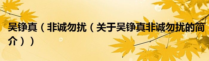 本文關于吳錚真 非誠勿擾的簡介就講解完畢,希望對大家有所幫助。
