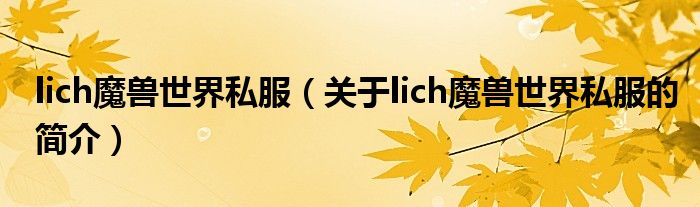 本文關(guān)于lich魔獸世界私服的簡介就講解完畢,希望對大家有所幫助。