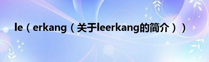本文關于le er kang的簡介就講解完畢,希望對大家有所幫助。