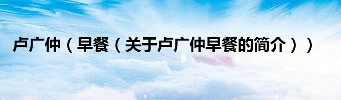 本文關(guān)于盧廣仲 早餐的簡介就講解完畢,希望對大家有所幫助。