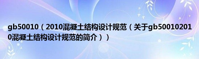 大家好,gb50010 2010混凝土結構設計規范,關于gb50010 2010混凝土結構設計規范的簡介很多人還不知道,現在讓我們一起來看看吧!