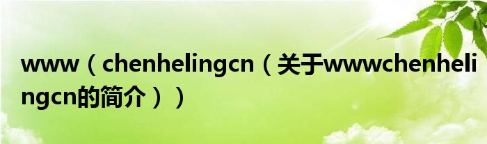 本文關于www chenheling cn的簡介就講解完畢,希望對大家有所幫助。