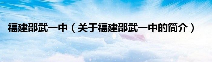 本文關(guān)于福建邵武一中的簡介就講解完畢,希望對大家有所幫助。