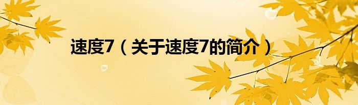 本文關(guān)于速度7的簡介就講解完畢,希望對大家有所幫助。