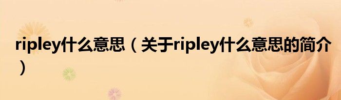 大家好,ripley什么意思,關于ripley什么意思的簡介很多人還不知道,現在讓我們一起來看看吧!