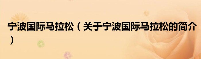 大家好,寧波國際馬拉松,關于寧波國際馬拉松的簡介很多人還不知道,現在讓我們一起來看看吧!