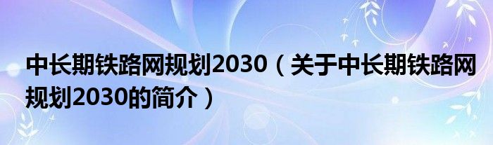 本文關于中長期鐵路網規劃2030的簡介就講解完畢,希望對大家有所幫助。