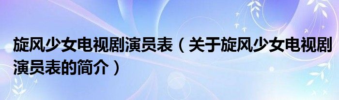 本文關于旋風少女電視劇演員表的簡介就講解完畢,希望對大家有所幫助。