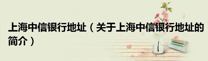 本文關于上海中信銀行地址的簡介就講解完畢,希望對大家有所幫助。