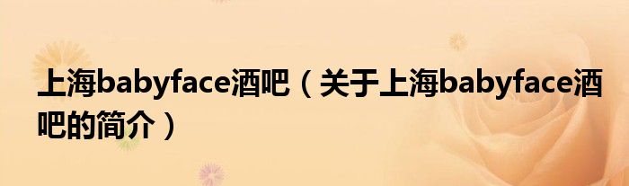 本文關于上海babyface酒吧的簡介就講解完畢,希望對大家有所幫助。