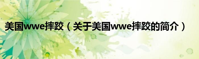 本文關(guān)于美國(guó)wwe摔跤的簡(jiǎn)介就講解完畢,希望對(duì)大家有所幫助。