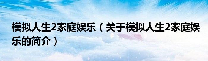 本文關(guān)于模擬人生2家庭娛樂的簡介就講解完畢,希望對大家有所幫助。