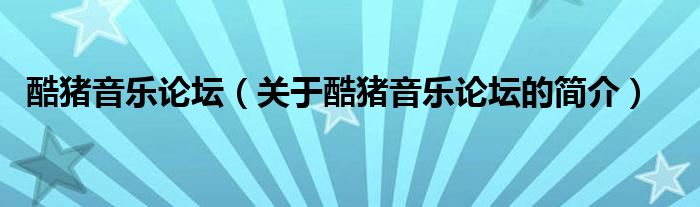 大家好,酷豬音樂論壇,關于酷豬音樂論壇的簡介很多人還不知道,現在讓我們一起來看看吧!
