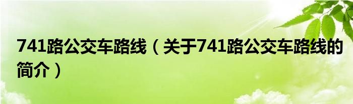 本文關(guān)于741路公交車路線的簡介就講解完畢,希望對(duì)大家有所幫助。