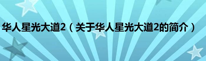 大家好,華人星光大道2,關(guān)于華人星光大道2的簡(jiǎn)介很多人還不知道,現(xiàn)在讓我們一起來看看吧!