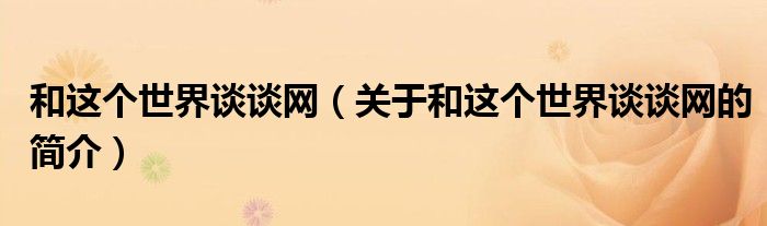 大家好,和這個世界談談網,關于和這個世界談談網的簡介很多人還不知道,現在讓我們一起來看看吧!