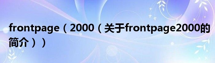 大家好,frontpage 2000,關于frontpage 2000的簡介很多人還不知道,現在讓我們一起來看看吧!