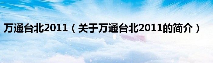 本文關(guān)于萬通臺北2011的簡介就講解完畢,希望對大家有所幫助。