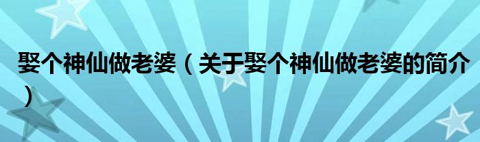 大家好,娶個神仙做老婆,關于娶個神仙做老婆的簡介很多人還不知道,現(xiàn)在讓我們一起來看看吧!