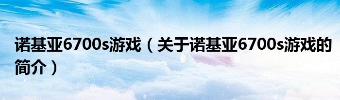 大家好,諾基亞6700s游戲,關于諾基亞6700s游戲的簡介很多人還不知道,現在讓我們一起來看看吧!