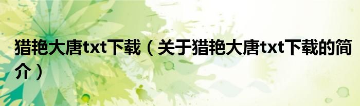 本文關于獵艷大唐txt下載的簡介就講解完畢,希望對大家有所幫助。