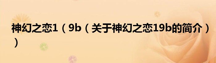 本文關于神幻之戀1 9b的簡介就講解完畢,希望對大家有所幫助。