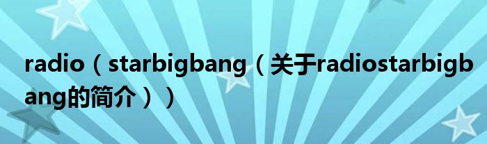 大家好,radio star bigbang,關(guān)于radio star bigbang的簡(jiǎn)介很多人還不知道,現(xiàn)在讓我們一起來看看吧!
