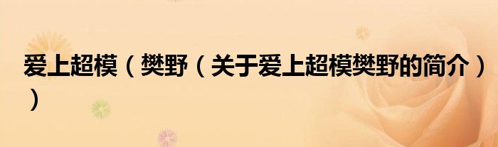 本文關于愛上超模 樊野的簡介就講解完畢,希望對大家有所幫助。