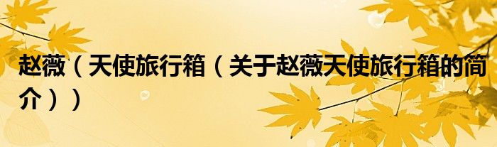 本文關于趙薇 天使旅行箱的簡介就講解完畢,希望對大家有所幫助。