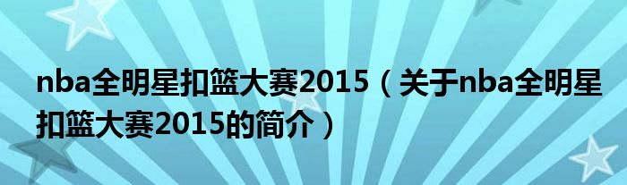 本文關于nba全明星扣籃大賽2015的簡介就講解完畢,希望對大家有所幫助。