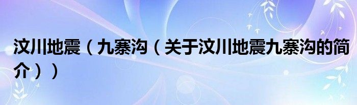 本文關于汶川地震 九寨溝的簡介就講解完畢,希望對大家有所幫助。