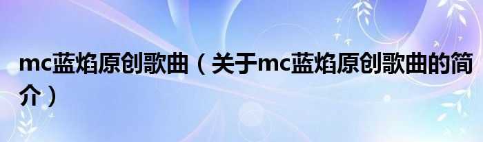 本文關于mc藍焰原創(chuàng)歌曲的簡介就講解完畢,希望對大家有所幫助。