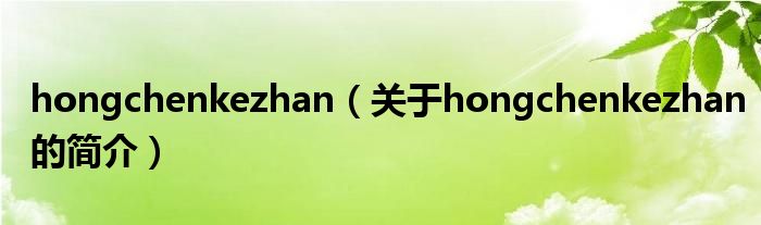 大家好,hongchenkezhan,關于hongchenkezhan的簡介很多人還不知道,現在讓我們一起來看看吧!