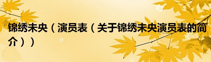 大家好,錦繡未央 演員表,關于錦繡未央 演員表的簡介很多人還不知道,現在讓我們一起來看看吧!