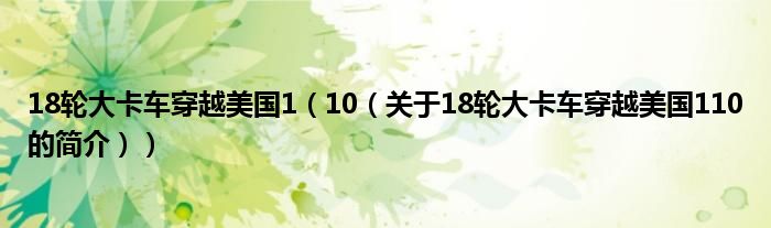 大家好,18輪大卡車穿越美國1 10,關于18輪大卡車穿越美國1 10的簡介很多人還不知道,現在讓我們一起來看看吧!