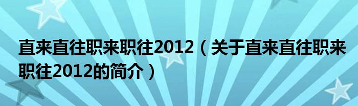 本文關(guān)于直來直往職來職往2012的簡介就講解完畢,希望對大家有所幫助。