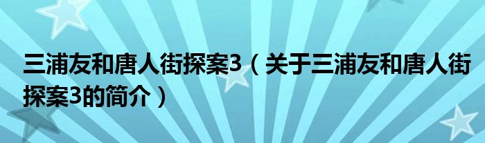 本文關于三浦友和唐人街探案3的簡介就講解完畢,希望對大家有所幫助。