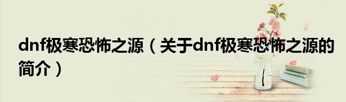 本文關于dnf極寒恐怖之源的簡介就講解完畢,希望對大家有所幫助。
