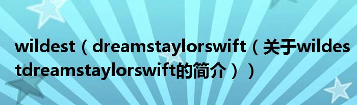 本文關于wildest dreams taylor swift的簡介就講解完畢,希望對大家有所幫助。