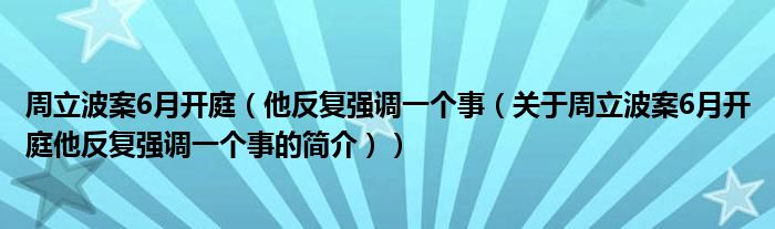本文關于周立波案6月開庭 他反復強調一個事的簡介就講解完畢,希望對大家有所幫助。
