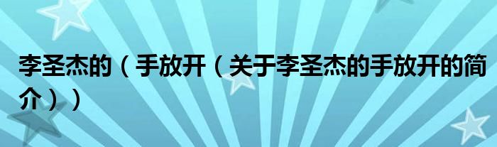 本文關(guān)于李圣杰的 手放開(kāi)的簡(jiǎn)介就講解完畢,希望對(duì)大家有所幫助。