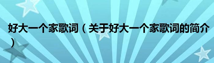 本文關于好大一個家歌詞的簡介就講解完畢,希望對大家有所幫助。