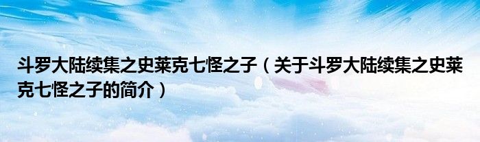 本文關(guān)于斗羅大陸續(xù)集之史萊克七怪之子的簡介就講解完畢,希望對(duì)大家有所幫助。